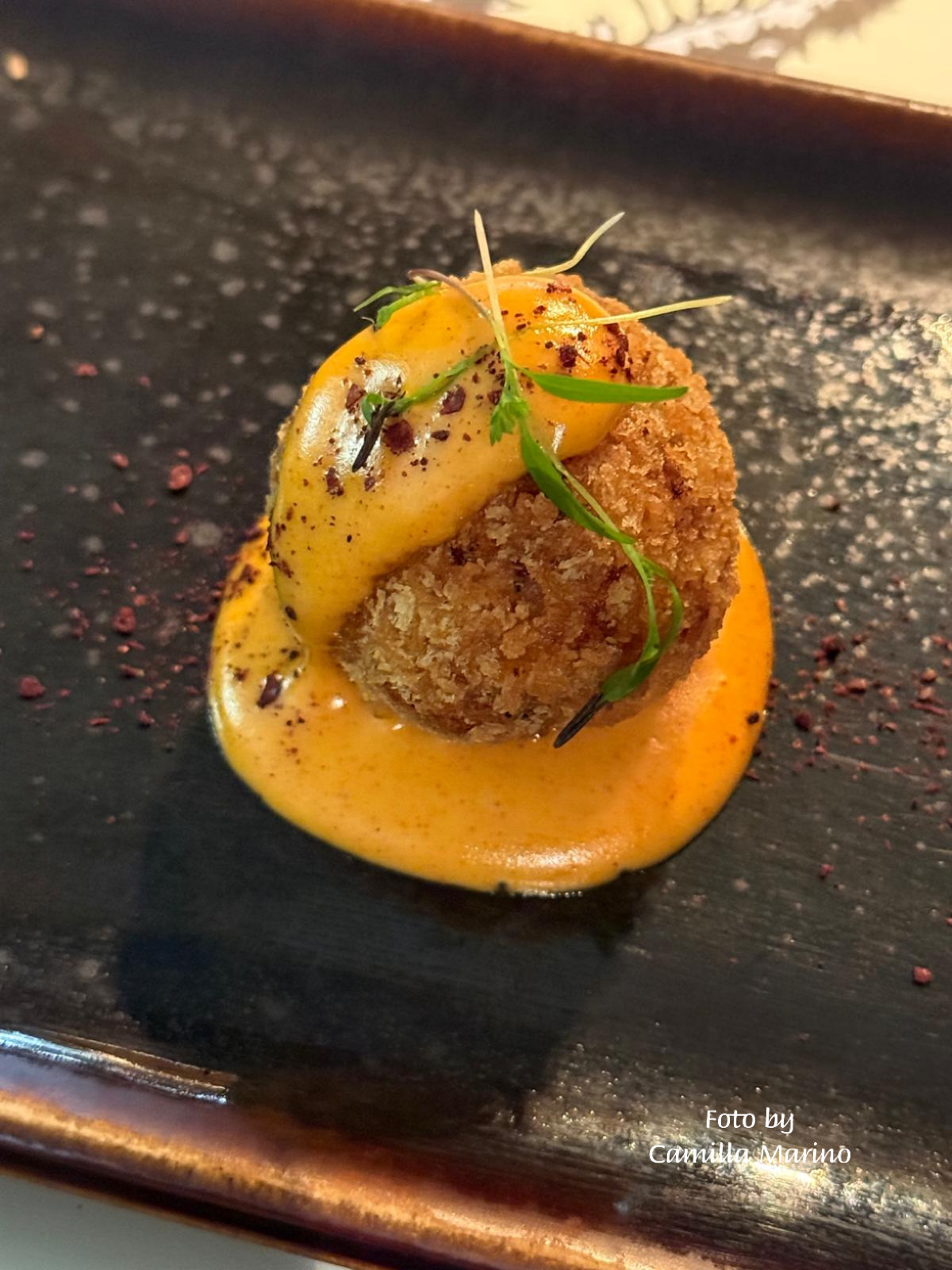 Una golosa e saporita coccola iniziale, un boccone siciliano rivisitato in chiave moderna.