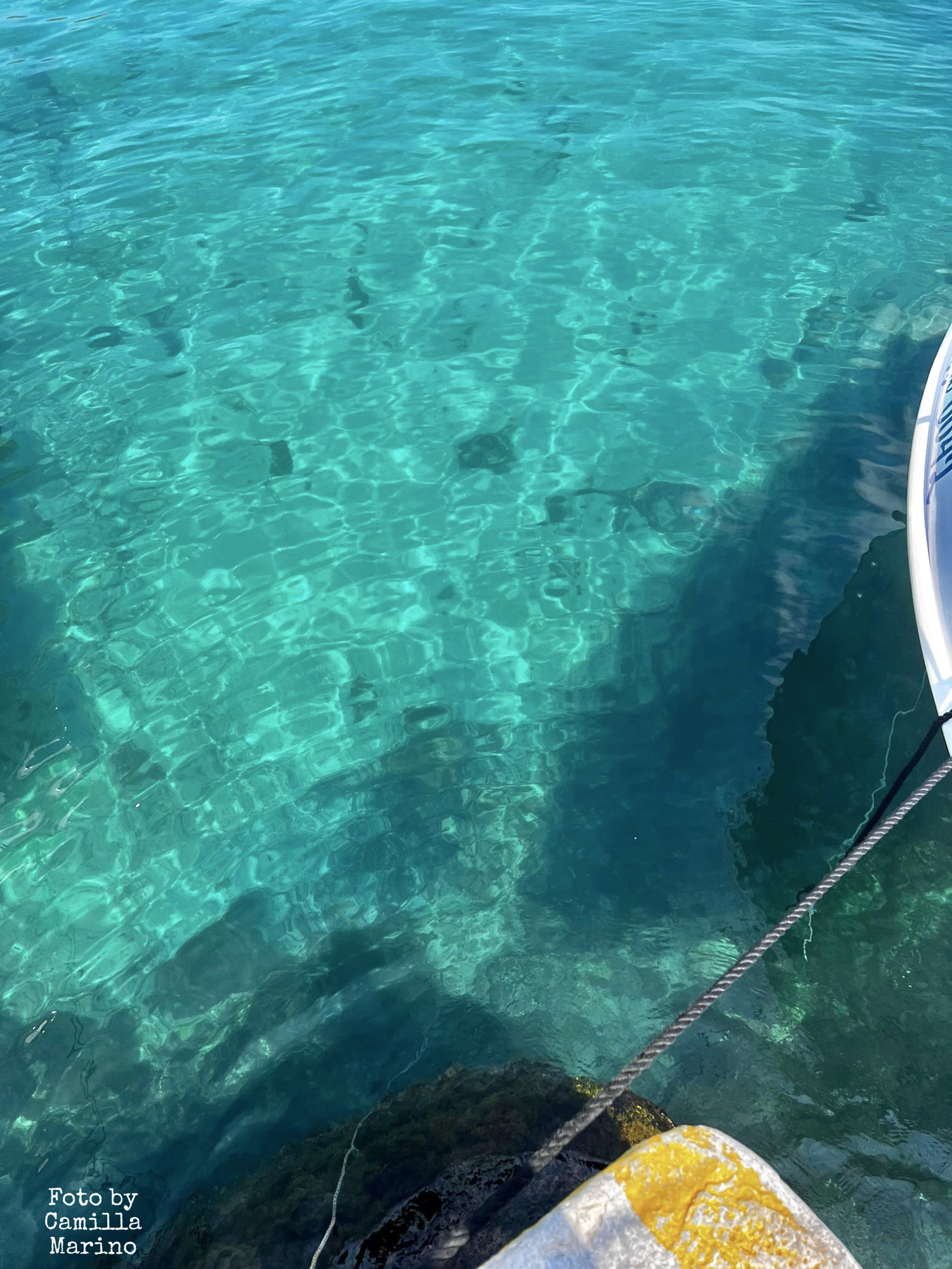 Il fondale trasparente è ancora più visibile, in ogni suo dettaglio. Le mille sfumature di blu incantano e invogliano.