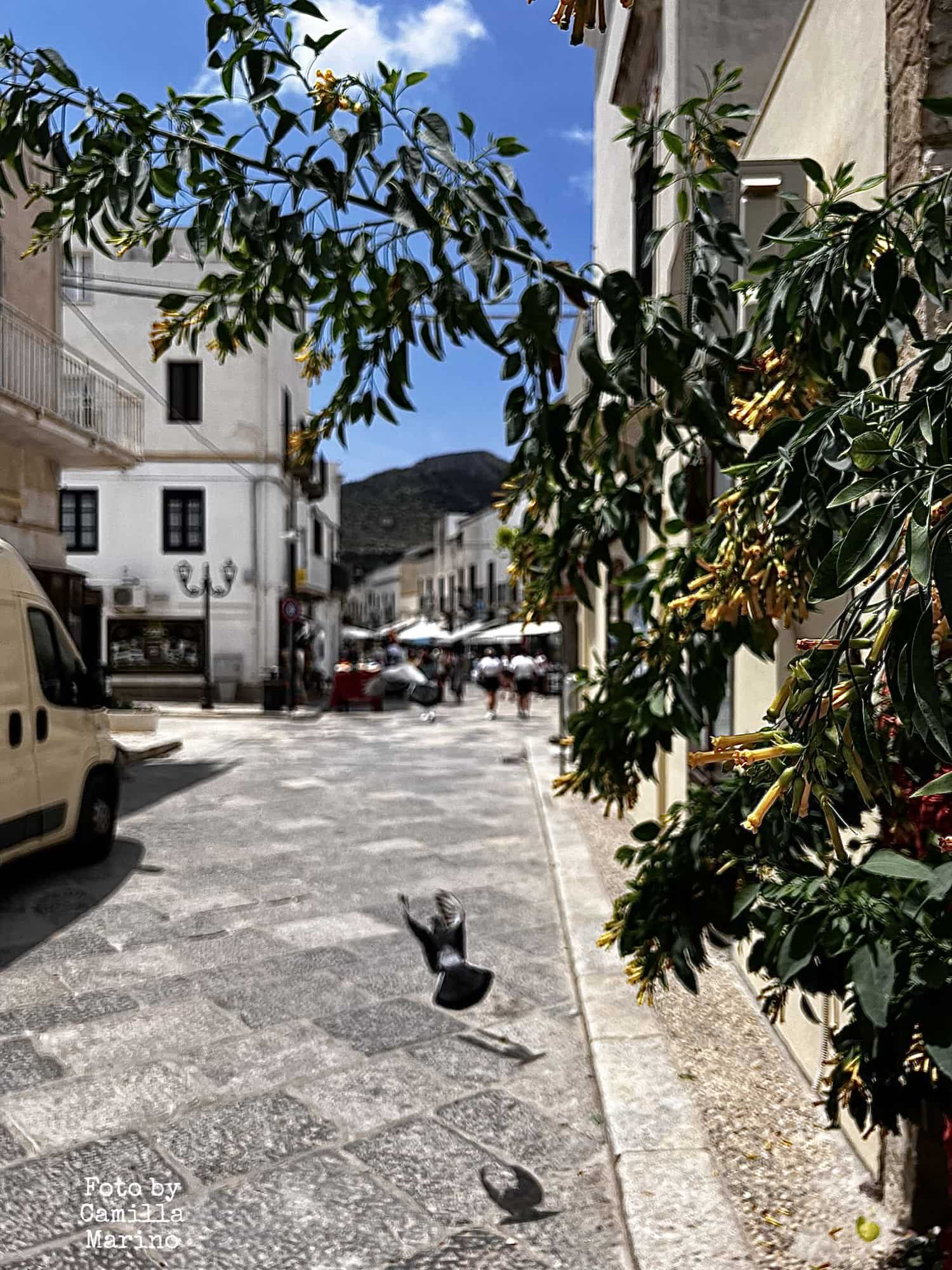 Ricordo che camminando per Piazza Madrice, dove c’è la chiesa, una delle due farmacie presenti sull’isola, il bar Aegusa, un panettiere, la Lampara (uno di quei ristoranti che rimangono chiusi d’inverno) e qualche negozietto con le porte sprangate, mi accorsi del silenzio, il vero silenzio, dove non passa un’auto, dove non c’è alcun vociare. A quel punto mi fermai e feci un giochino che faccio sempre in assenza di rumore: schiocco le dita, improvviso uno scoordinatissimo tip tap, batto le mani e ascolto. Ascolto l’eco, il suono dei miei movimenti, dei miei passi sulle lucide e antiche mattonelle, il mio respiro.