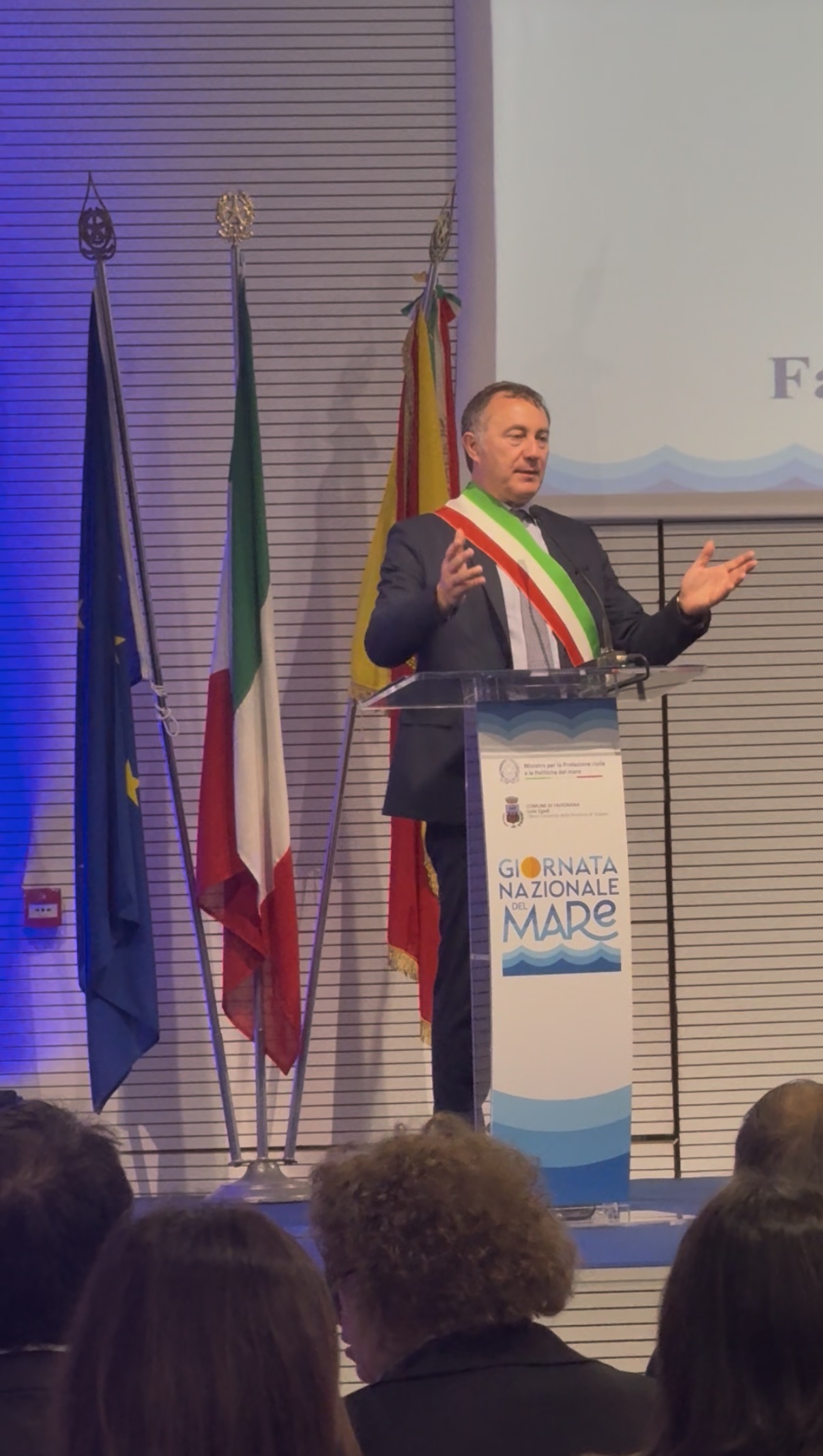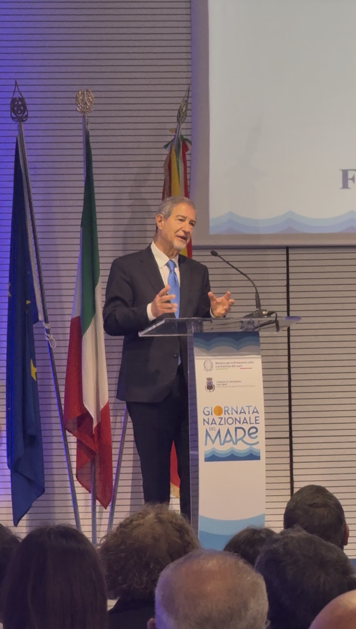 In primis, Nello Musumeci, il Ministro per la Protezione Civile e le Politiche del Mare, promotore di questa splendida iniziativa a Favignana, che ha esposto un discorso particolarmente ispirante e illuminante.