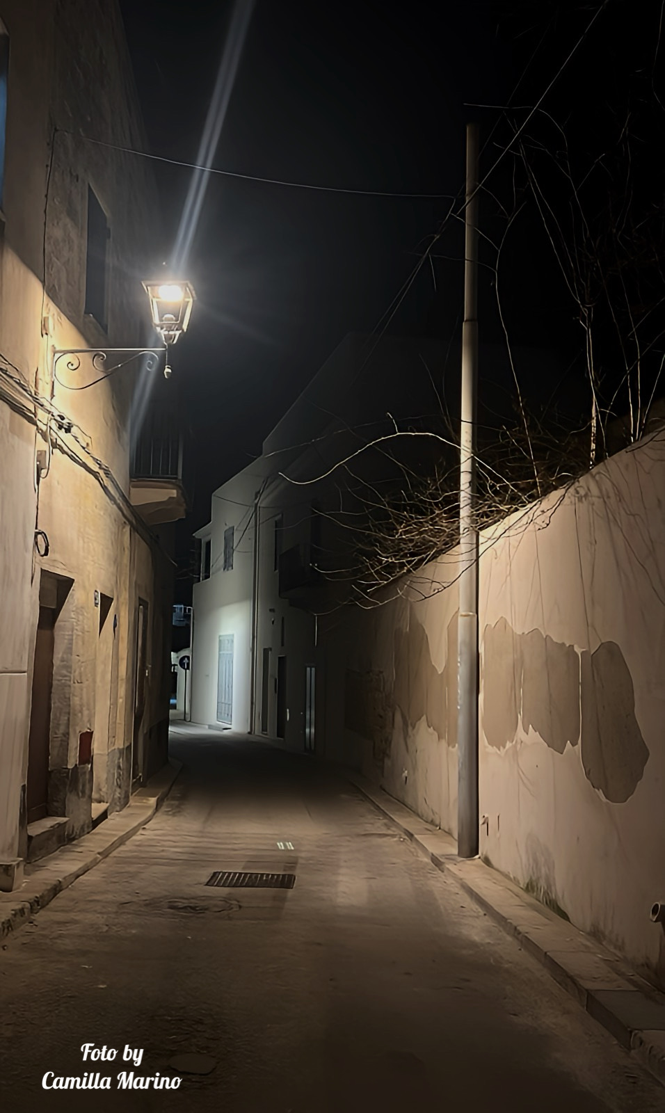 E mentre esci dal paese, incamminandoti verso i campi e verso il mare, la notte diventa quasi una compagna, un’amica, con la luna che si trasforma nell’unica vera fonte di luce, con la sua alba di perla, per citare Pascoli.
