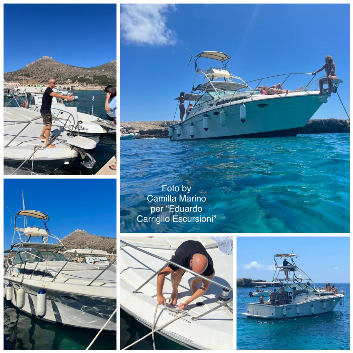 È dal 2008 che Eduardo accompagna i turisti in tutte le baie più belle di Favignana. Gli chiedo, allora, cosa lo avesse spinto all’epoca a svolgere questa professione. Eduardo inspira, riflette, la calma e la quiete che ci circondano sono tali da farmi “sentire” la sua mente che torna indietro a quegli anni, che ripesca nella memoria quel momento. E poi mi racconta: “Mio papà ha usufruito, all’epoca, di fondi europei e assieme ad altri due soci, ha acquistato una barca. Avevano il comandante, gli serviva il marinaio.”.