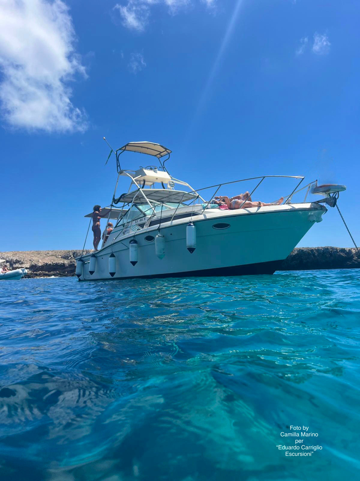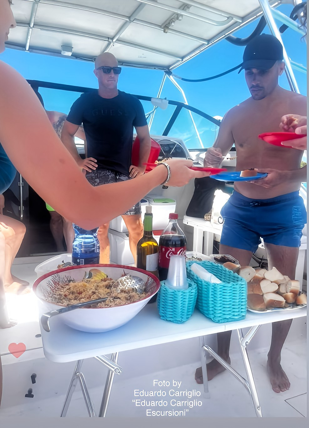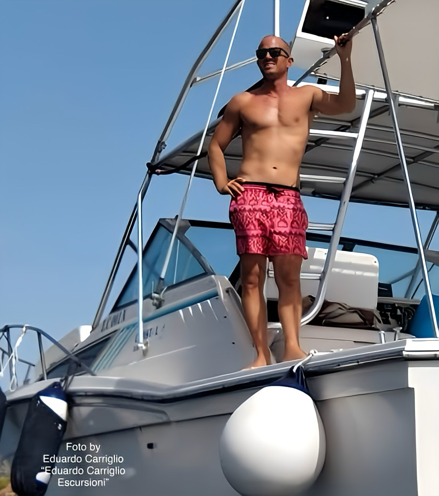 Dopo aver speso qualche minuto a raccontarmi una divertente e grottesca storiella sulla, diciamo, “evacuazione” dei gabbiani in barca durante il suo primo anno come marinaio, Eduardo lascia il cuore a briglie sciolte, si percepisce l’emozione mentre dice, quasi rapito: “Quando sono in mare è un mix di emozioni. Mi sento ansioso, perché sono responsabile civilmente e penalmente; mi sento ansioso perché… perché da me dipende la soddisfazione del cliente; mi sento soddisfatto, perché sto facendo un lavoro che amo… e poi mi sento, soprattutto durante la navigazione, quando sono sul tuna tower e quindi non ho nessuno che mi disturba durante la guida… mi sento… libero. La giusta parola è libero. In sei ore e mezza di escursione ci saranno circa due ore di navigazione, chiaramente suddivise a tappe. E io, in queste due ore, mi sento libero. Libero perché davanti a me ho il mare, l’orizzonte e lì la mente viaggia senza limiti, senza meta… è bellissimo.”.
