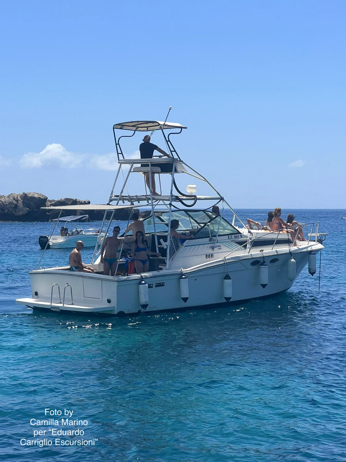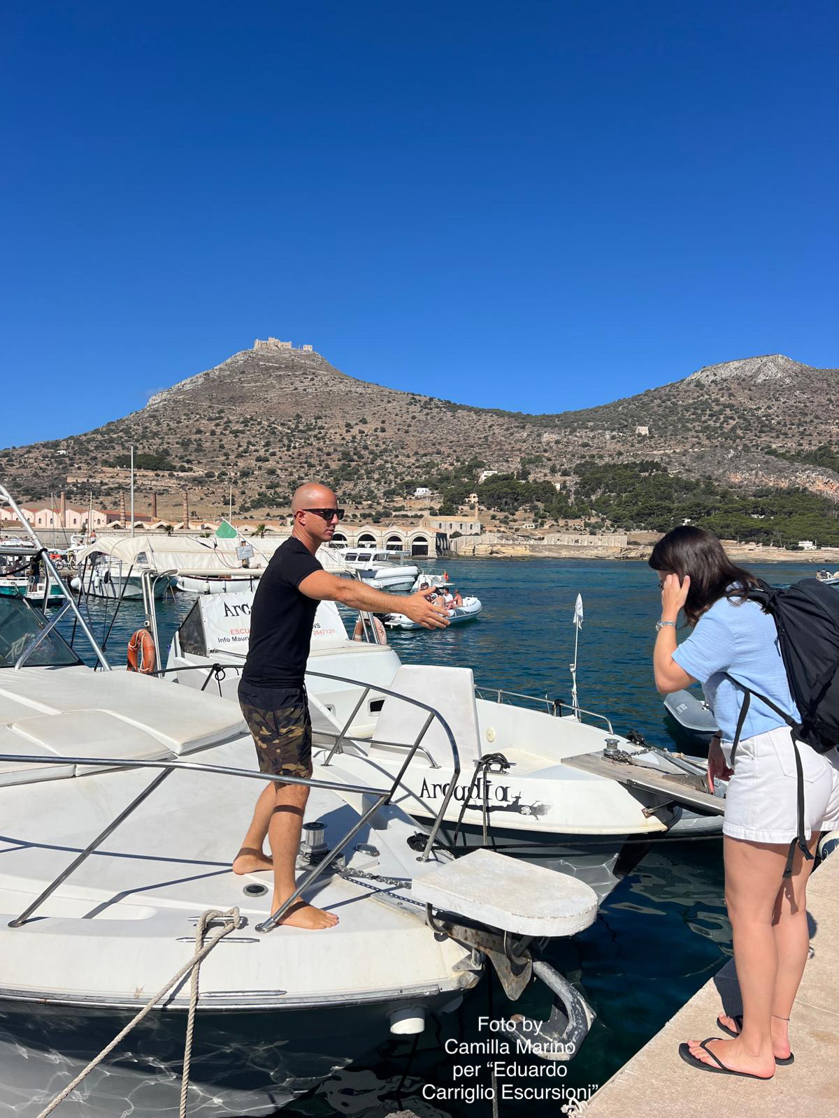 È dal 2008 che Eduardo accompagna i turisti in tutte le baie più belle di Favignana. Gli chiedo, allora, cosa lo avesse spinto all’epoca a svolgere questa professione. Eduardo inspira, riflette, la calma e la quiete che ci circondano sono tali da farmi “sentire” la sua mente che torna indietro a quegli anni, che ripesca nella memoria quel momento. E poi mi racconta: “Mio papà ha usufruito, all’epoca, di fondi europei e assieme ad altri due soci, ha acquistato una barca. Avevano il comandante, gli serviva il marinaio.”.